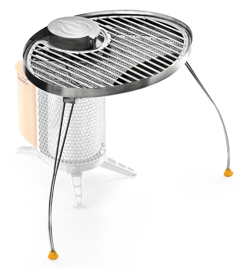 Portable Grill – transforms your BioLite CampStove 2+ into a wood-fired grilling surface for an old-fashioned wood-fired style grill-out. The aluminium leg provides stability while you can flip open the lid to feed the fire without disturbing the cooking. The Grill packs down to a compact 3″ while the CampStove nests inside the KettlePot for a travel-friendly design.