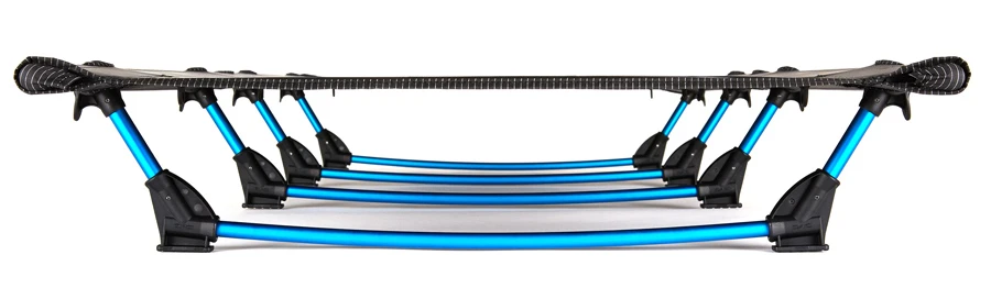 4 press-fit supports deliver support and stability with the option to assemble with 3-legs for lighter users looking to reduce their pack weight. An innovative lever locking system provides excellent tension to the bed surface to prevent sag and discomfort. A packed length of just 53cm slips easily in a rucksack or cycle pannier. The raised design keeps you away from cold and damp ground.