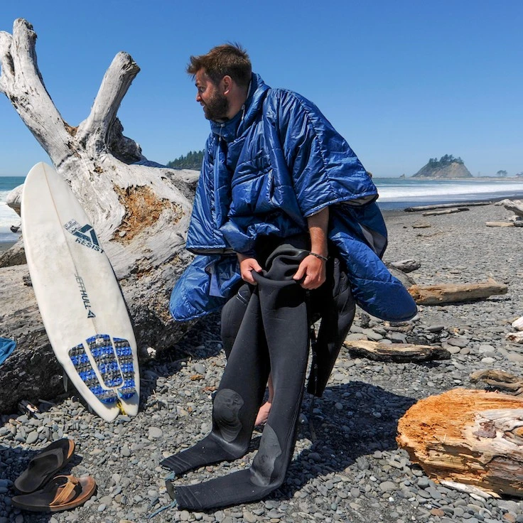 Wear it as a poncho on walks and around camp, or spread it out as a sleeping blanket for your tent, picnic spread or just to relax on in the sun. The compressible design stuffs into an integrated pocket which can then double as a pillow for added travel and campsite comfort.