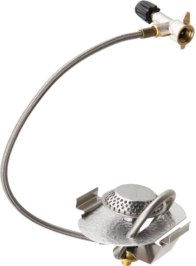 Completing the set is the Trangia 25 Series Gas Burner. This compact camp stove delivers more heat than the conventional spirit burner and without leaving any deposits on the pans. It fits easily into the lower windshield section and features a durable connector hose and flame regulator for simmer/boil control.